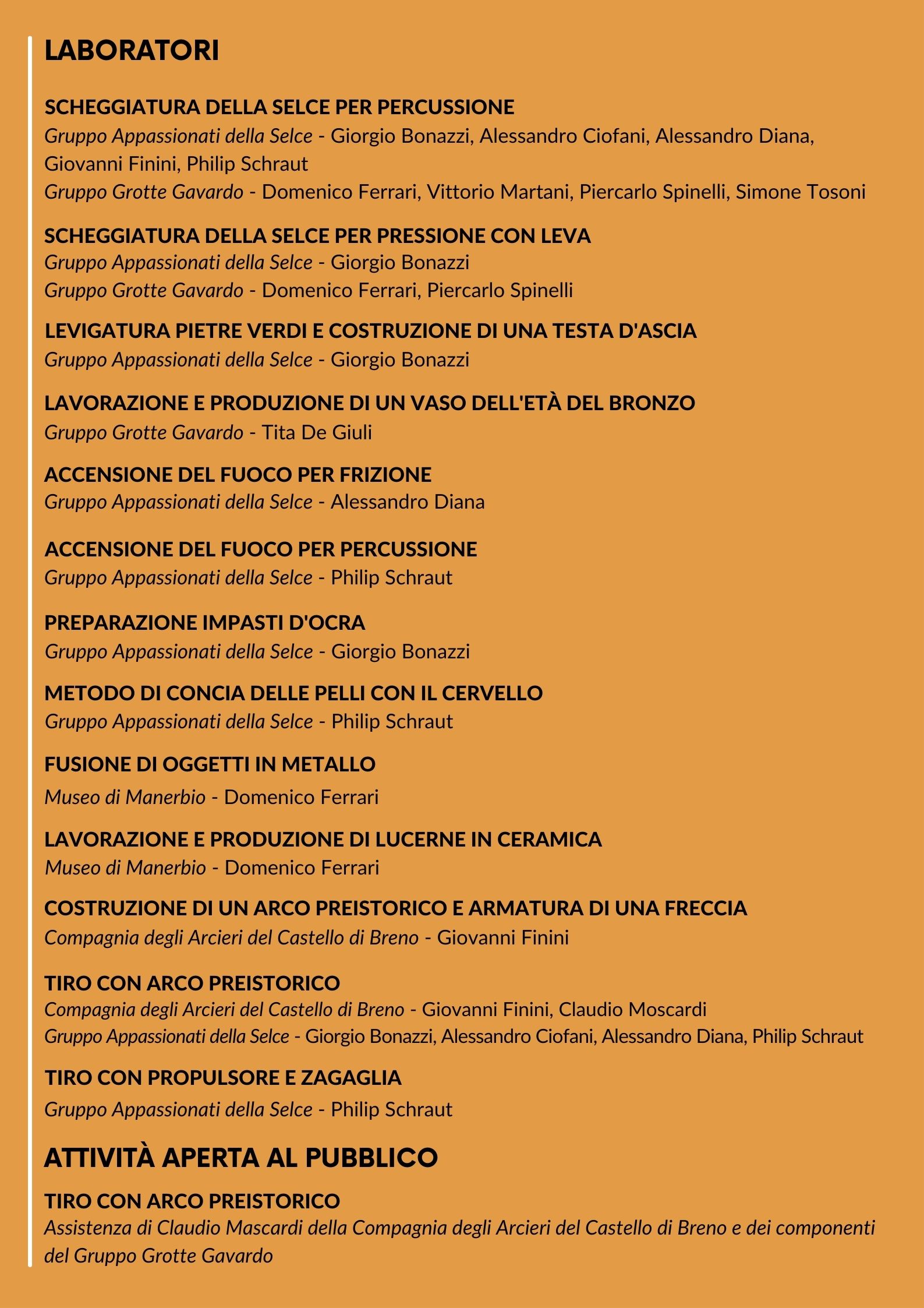 Attività in collaborazione con il Gruppo Grotte Gavardo, Gruppo Appassionati della Selce, Compagnia degli Arcieri del Castello di Breno, Museo di Manerbio.