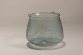 Bicchiere in vetro soffiato azzurro chiaro, databile al I secolo d.C.