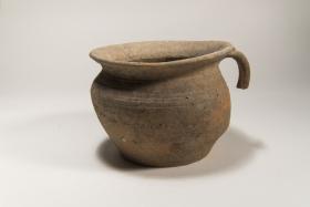 Boccale in ceramica, tipo henkedellenbechern, di tradizione celtica, caratterizzato da una depressione della parete in corrispondenza dell ansa, databile al I-II secolo d.C.