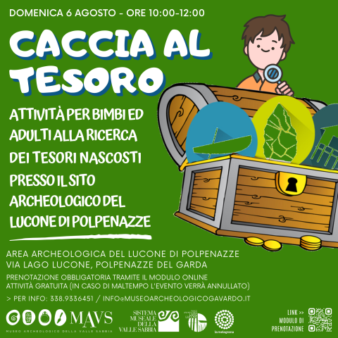 Bimbi ed adulti, muniti di una mappa, dovranno trovare un tesoro tra gli scavi archeologici, raccogliendo tracce ed indizi per superare le piccole prove che troveranno nel percorso.