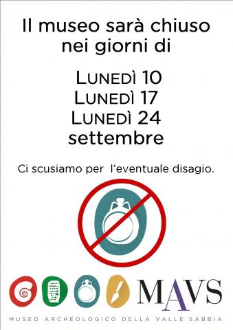 Ci scusiamo per il disagio ma nel mese di settembre il 10-17 e 24 settembre saremo chiusi.