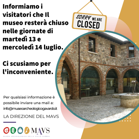Informiamo i visitatori che il museo resterà chiuso nelle giornate di martedì 13 e mercoledì 14 luglio.
