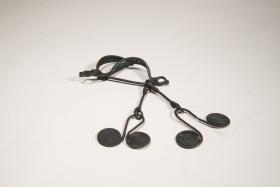 Due fibule del tipo a tenaglia, agganciate tra loro e in una sono infilati due pendagli a spirale, databile al II secolo d.C.
