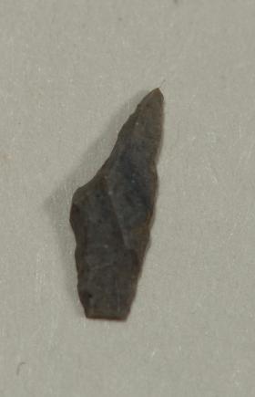 Microscopico strumento utilizzato per armare una freccia di età Mesolitica. Questo manufatto è di grande importanza culturale e cronologica poiché permette di attribuire il contesto da cui proviene al momento più antico del Mesolitico, detto Sauveterriano. Il reperto proviene dal sito di Vaiale in comune di Lavenone.