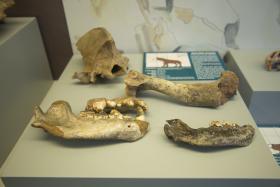 La iena delle caverne, ora estinta, appartiene alla stessa specie della attuale iena maculata, comune in tutta l’Africa. Il suo aspetto doveva essere molto simile a quello della specie vivente con piccole differenze dovute all’adattamento all’ambiente Eurasiatico. Vive in branchi costituiti da diversi individui guidati da una femmina matriarca. Conosciuta per le sue particolari abitudini alimentari che comprendono il consumo degli ossi delle prede, facilitato dalla possente dentatura. Utilizza le grotte come tane dove alleva anche i cuccioli. Dopo circa tre mesi di gestazione la iena partorisce 3-5 cuccioli. Tre i fossili rinvenuti al Buco del Frate la presenza della iena era piuttosto comune.
