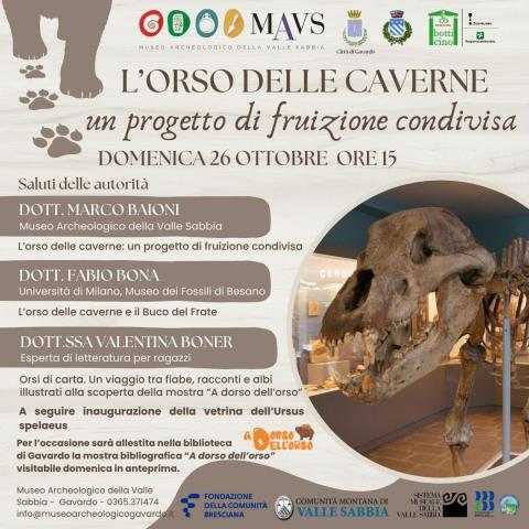 Domenica 26 ottobre alle ore 15 vi aspettiamo presso il MAVS per l'inaugurazione della nuova vetrina del nostro Ursus spelaeus, uno dei reperti più amati del nostro museo!