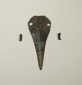 Lama di pugnale in bronzo con base arcuata e due fori con ribattini per l’aggancio della impugnatura che doveva essere in legno. Dalle analisi metallografiche il pugnale è risultato di bronzo, cioè di una alligazione di rame e stagno (14,2%). Sebbene l’epoca del Lucone si chiami età del Bronzo, questa lega compare solo in un momento centrale del Bronzo Antico, precedentemente gli oggetti erano fatti in rame puro o con percentuali di arsenico.