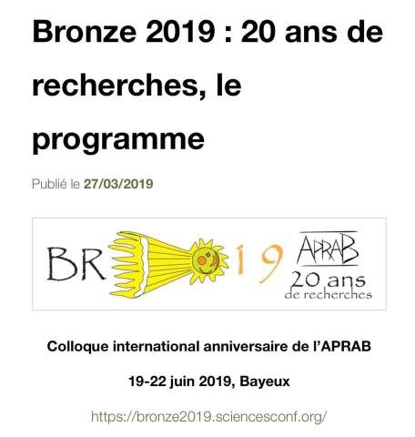 Per maggiori info: https://bronze2019.sciencesconf.org/