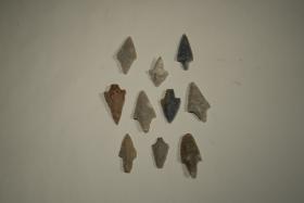 Punte di freccia in selce con peduncolo e spalle, tipica dell’età del Rame e ben documentata tra i corredi funerari. Recinto A. Riparo della Corna Nibbia di Bione, Età del Rame.