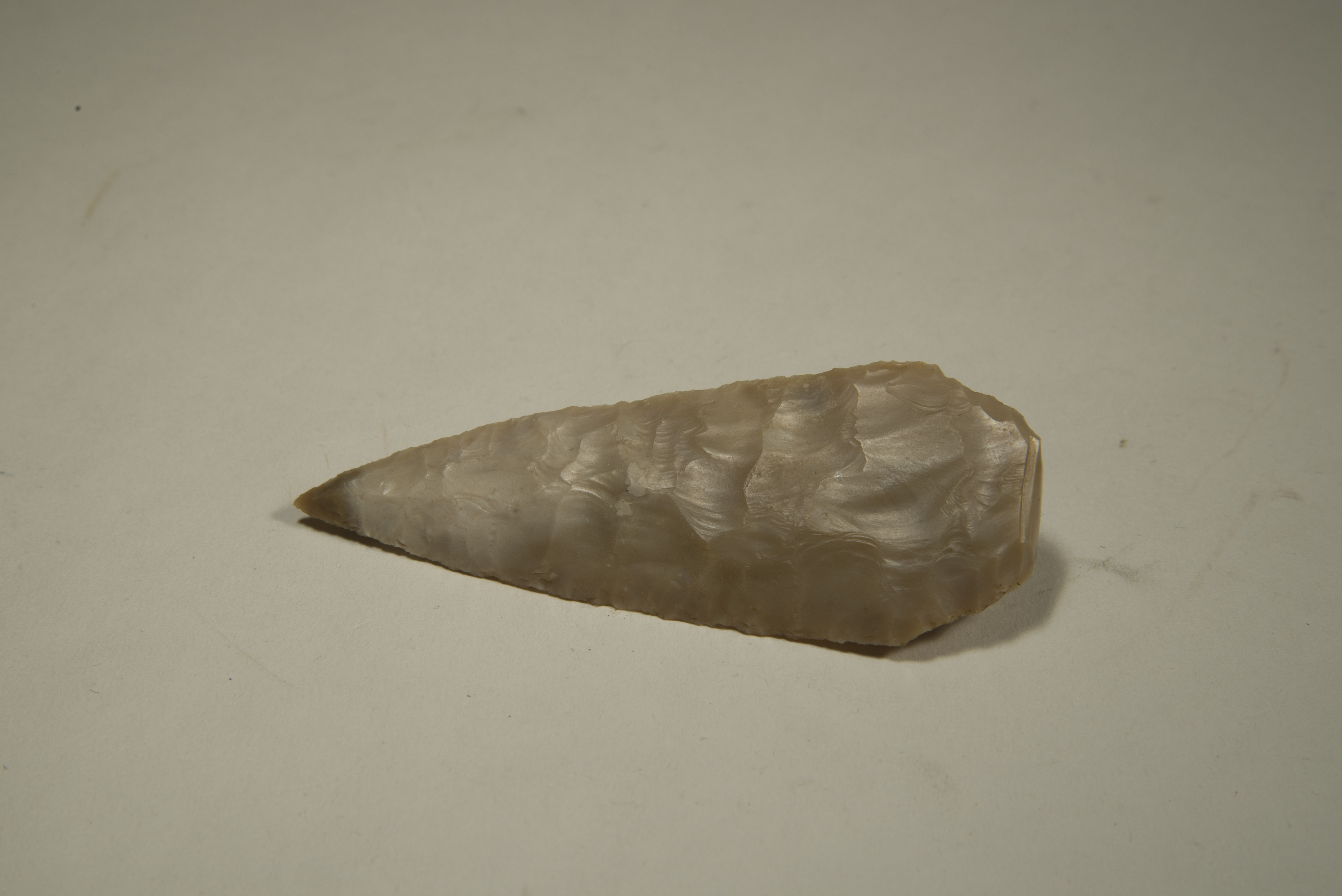 Lama di pugnale in selce a base trapezoidale e ritocco bifacciale piatto coprente. Recinto B. Riparo della Corna Nibbia di Bione, Età del Rame.