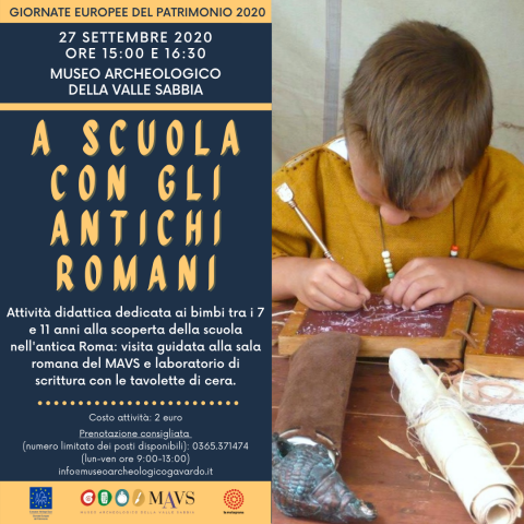 L'attività didattica, rivolta ai bambini tra i 7 e gli 11 anni, approfondirà la scuola in epoca romana.