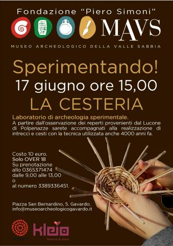 Laboratorio di archeologia sperimentale dedicato alla cesteria. A partire dall’osservazione dei reperti provenienti dal Lucone di Polpenazze sarete accompagnati alla realizzazione di intrecci e cesti con la tecnica utilizzata anche 4000 anni fa.In collaborazione con KLEIO - precorsi di storia.