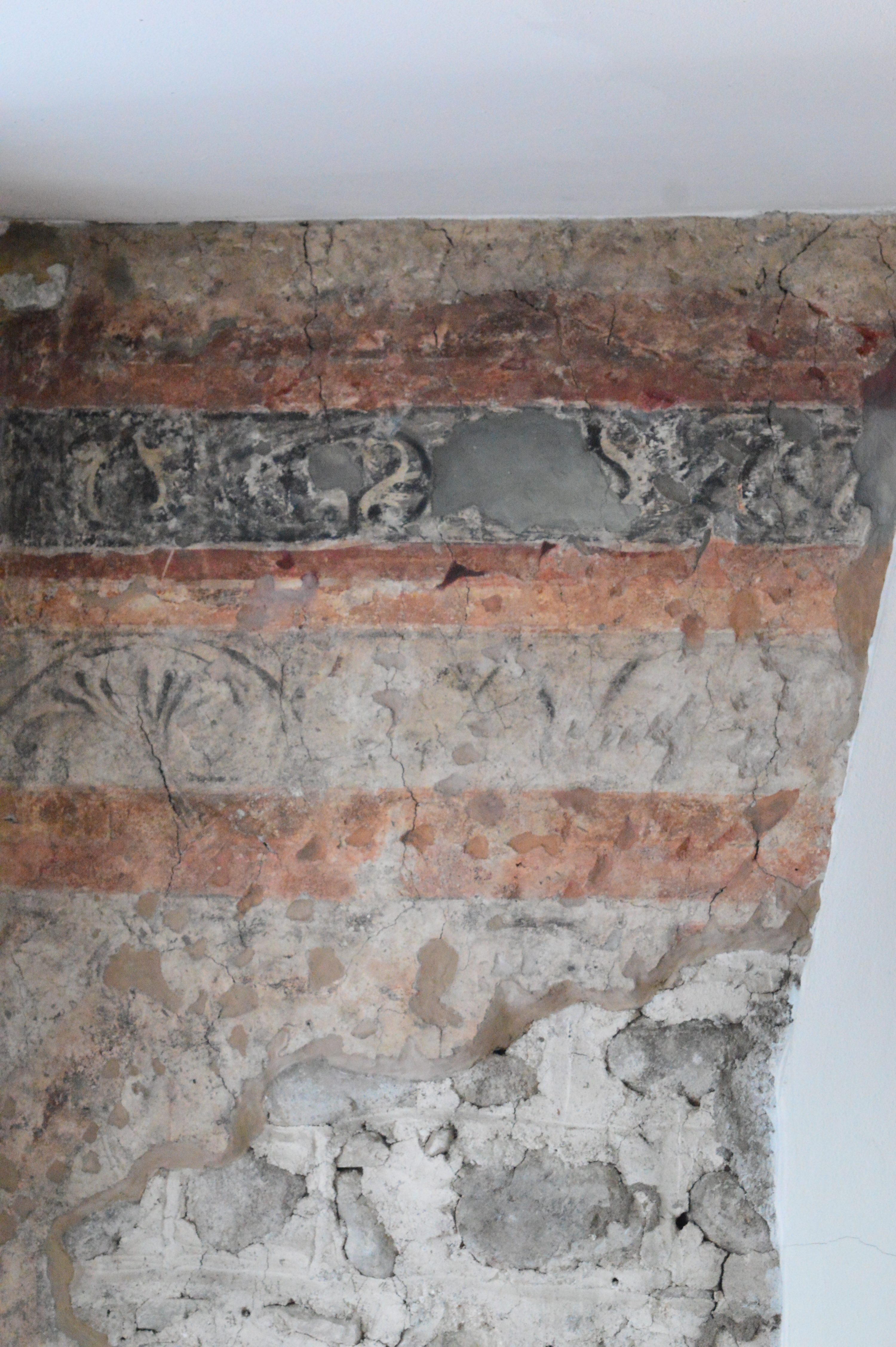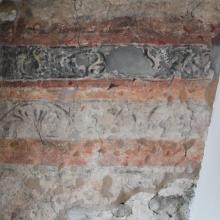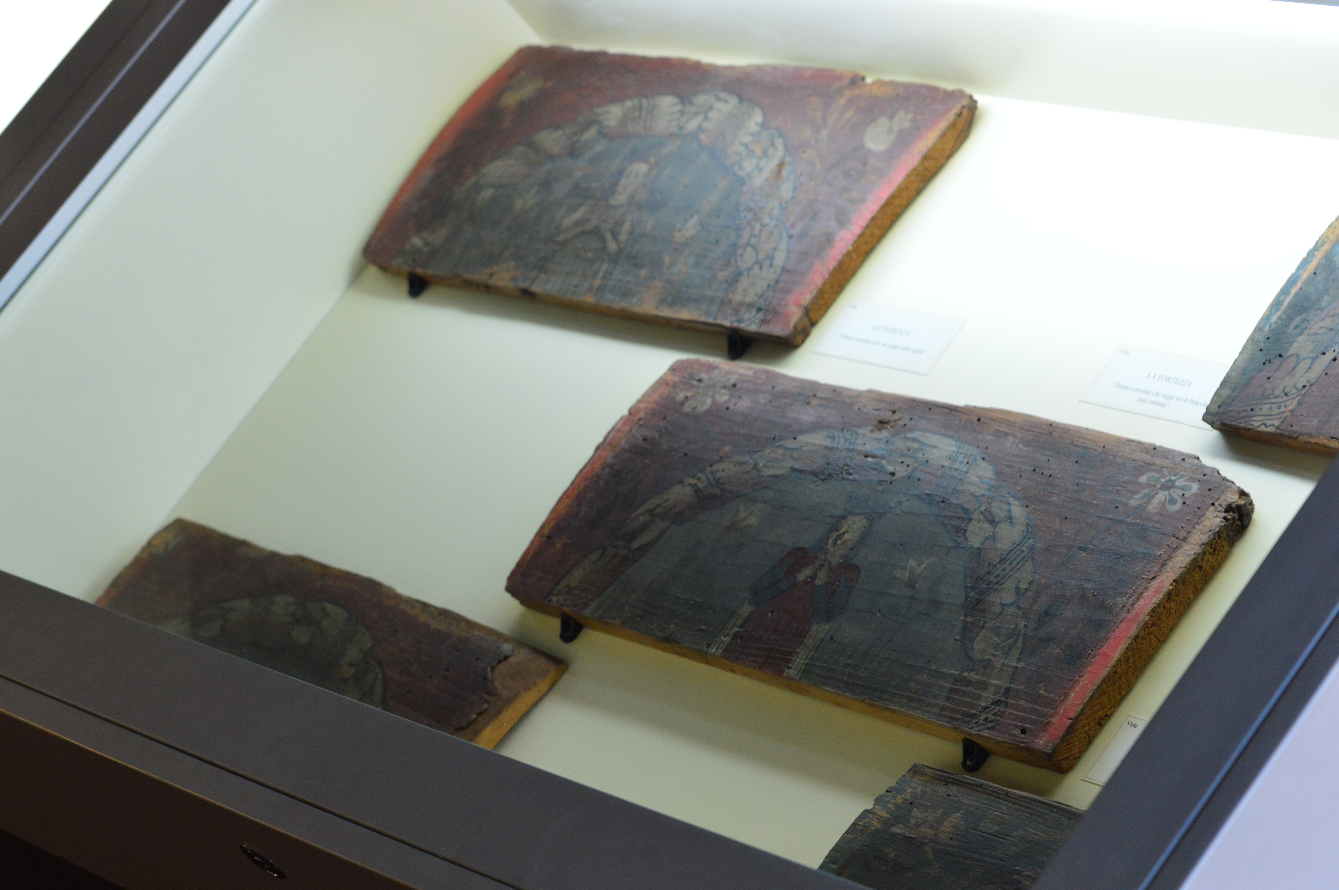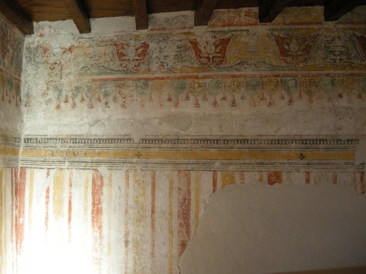 Nel contesto dei lavori di ripristino sono emerse all'interno dell'edificio alcune interessanti testimonianze: affreschi cinquecenteschi a fasce colorate e candelabre in una delle sale al primo piano e una serie di 19 tavolette lignee dipinte, poste a decorazione delle travature lignee del soffitto. Si tratta di 6 stemmi, 7 virtù e 6 vizi: possiamo leggere sugli stemmi gli emblemi di alcune importanti famiglie che ebbero vescovo in Brescia: quello del veneziano Bartolomeo Malipiero (vescovo dal 1457 al 1464), di Domenico de Dominici (1464-1478), e di Lorenzo Zane (1478-1484), e concludere che le tavolette furono commissionate, realizzate e poste a decorazione del piano nobile del palazzo nella seconda metà del XV secolo.