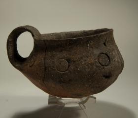 Tazzina globosa con decorazione a cerchielli del tipo Breno, rinvenuta capovolta all’interno di una buca scavata sotto il pavimento di una capanna di Monte Covolo. Il manufatto conteneva materiale vegetale carbonizzato e forse era legato a qualche rito di fondazione della casa. Età tardo neolitica.