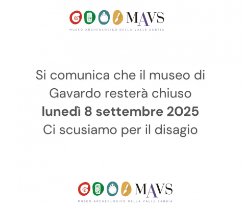 Lunedì 8 settembre 2025 il museo di Gavardo resterà chiuso.