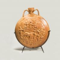 Fra i materiali va ricordato in particolare il bellissimo vaso-borraccia decorato con scene dell'apoteosi di Dioniso-Liber e l'uccisione di Laomendonte re di Troia per mano di Ercole: lo splendido manufatto, la cui articolata allegoria figurata è stata analizzata da M. Vermaseren in una monografia del 1976, è la fine realizzazione di un atelier della Gallia centrale di Lione, attiva nei primi decenni del II secolo d.C.