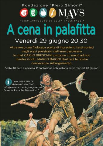 Il Museo archeologico della Valle Sabbia ripropone la formula “A cena al museo tra saperi e sapori”: mix tra cena e conferenza tematica dedicata alle scoperte sull’alimentazione nell’antichità. Si inizia con “A cena in palafitta”: un menù studiato ad hoc dallo chef CARLO BRESCIANI, dell’Antica cascina San Zago creato attraverso una filologica scelta di ingredienti e cotture testimoniate negli scavi preistorici dell’area gardesana e in particolare nello scavo palafitticolo di Lucone di Polpenazze. Tra una portata e l'altra, il dott. MARCO BAIONI, direttore del Museo e degli scavi illustrerà le nostre conoscenze sull'argomento. Alla fine della cena sarà possibile seguire una visita guidata alla mostra temporanea “Alle radici del cibo”, dedicata all’alimentazione nelle palafitte. La cena si svolgerà nel cortile interno del museo, splendida cornice quattrocentesca; tra selvaggina, frutti spontanei, gnocchi di pane, sidro di mele, formaggi di capra e altre delizie ce ne sarà per tutti i gusti. e a settembre "IL GUSTO DI AUGUSTO" come nell'Antica Roma.