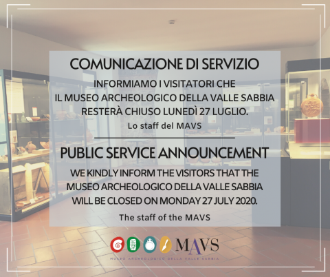 Informiamo i visitatori che lunedì 27 Luglio, il museo resterà chiuso.