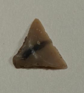 con tranciante trasversale con codolo a peduncolo ritocco bifacciale parziale. Le circostanze del ritrovamento indicano la funzione di corredo funerario . La funzioni di tali punta aveva un impiego specializzato, serviva ad armare frecce per la caccia di volatili (adatta a tranciare le piume delle ali). Riparo Cavallino, età del Rame.