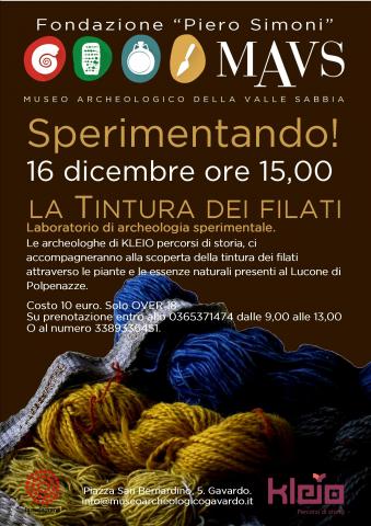 Ultimo laboratorio di archeologia sperimentale per il 2018. LA TINTURA DEI FILATI. Su prenotazione. over 18. COSTO DI 10 euro. Vi aspettiamo!